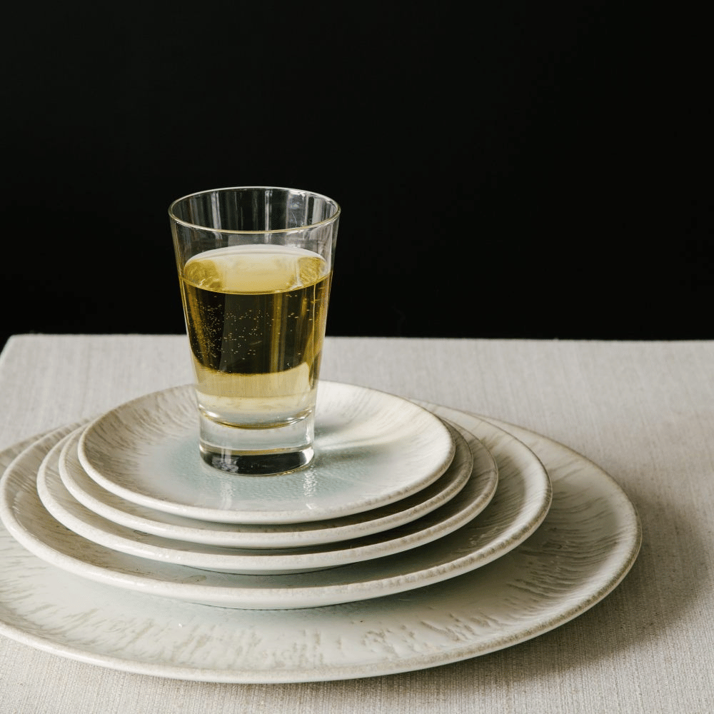The Rivolo Collection features a tranquil aqua-blue center framed by an ivory textured rim and finished with a premium glaze. This is truly one sophisticated statement piece.